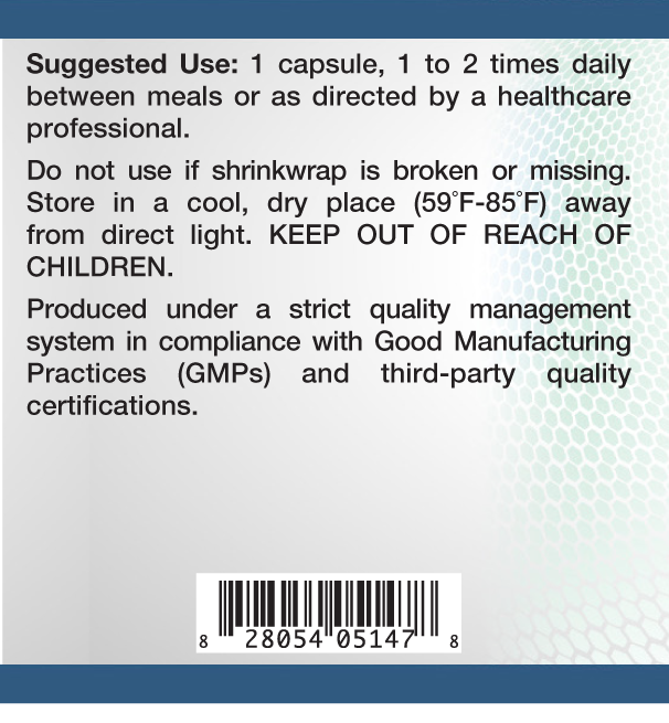 Suggested Use: 1 capsule, 1 to 2 times daily, between meals or as directed by a physician. S